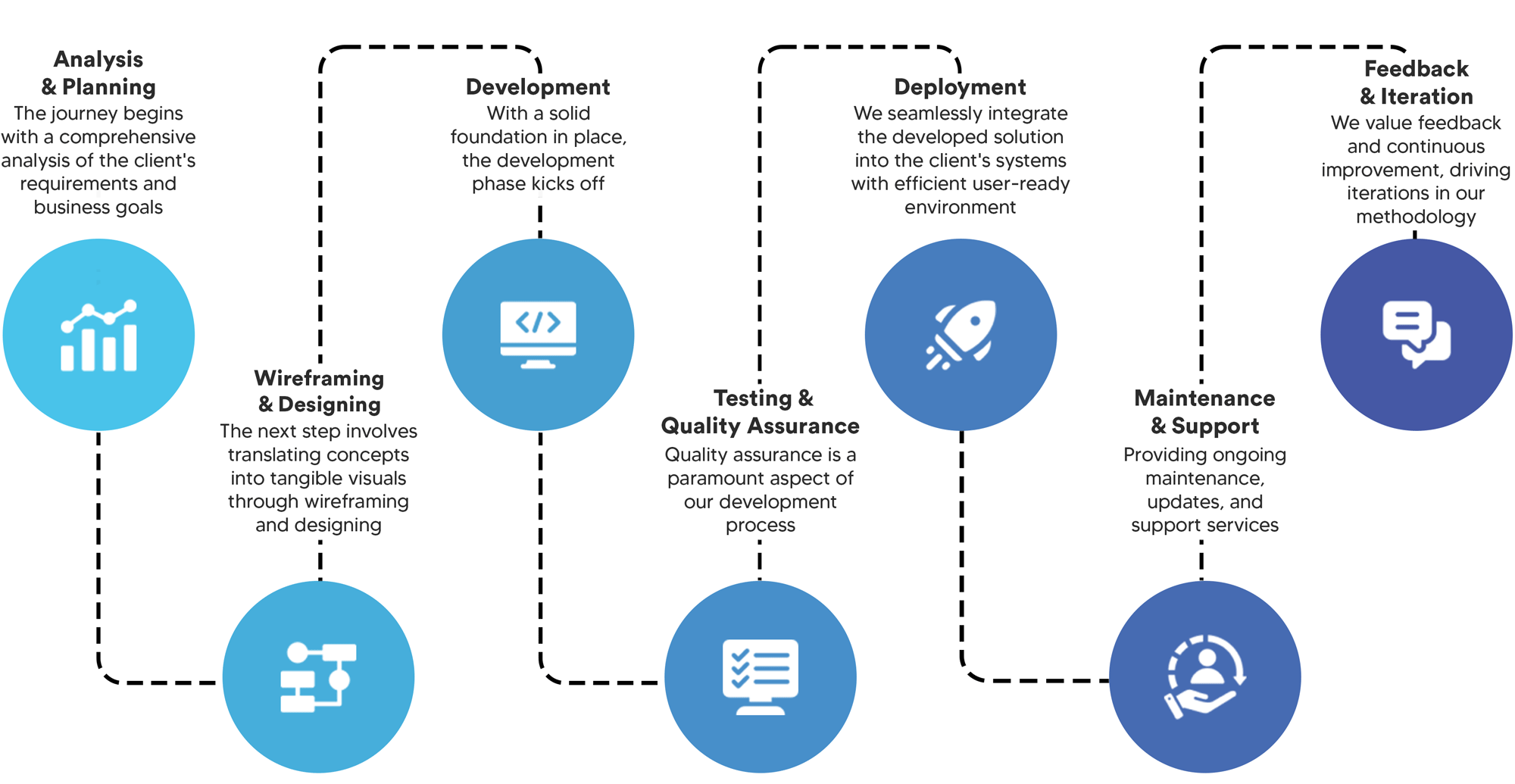 Our project-oriented approach, supported by our team of software development specialists, is dedicated to fostering client collaboration and achieving specific project objectives.